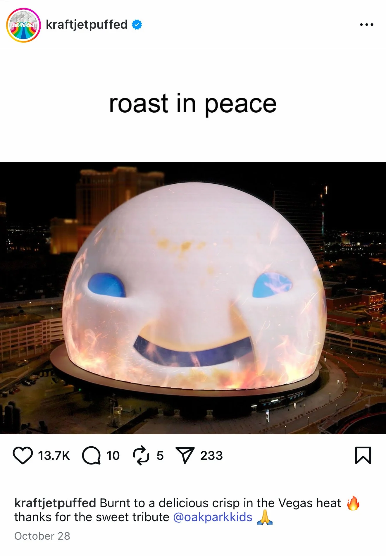 With Jet-Puffed featured in the Las Vegas Sphere’s Sphere of Fear campaign, we built a playful social activation to raise visibility.